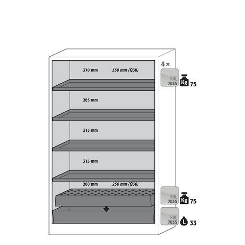 Brandsäkert skåp för kemikalier Q-CLASSIC-90, Total höjd: 1953 mm, Total bredd: 599 mm Brandsäkert skåp för kemikalier Q-CLASSIC-90, Total höjd: 1953 mm, Total bredd: 599 mm