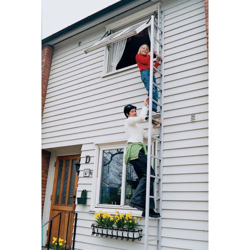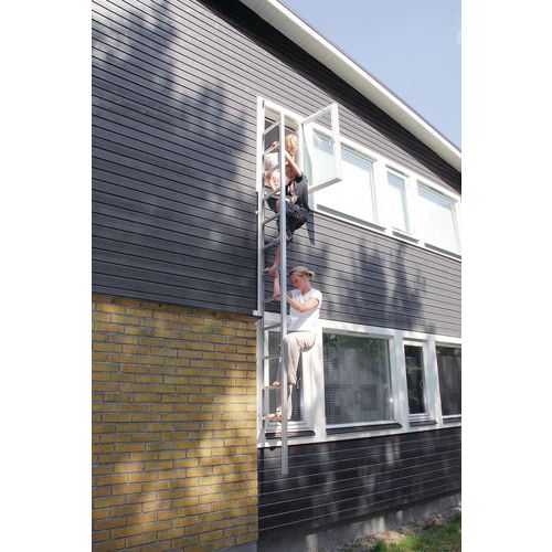 - Hopfällbar, väggfast brandstege/räddningsstege ser ut som en tunn list när den inte används.