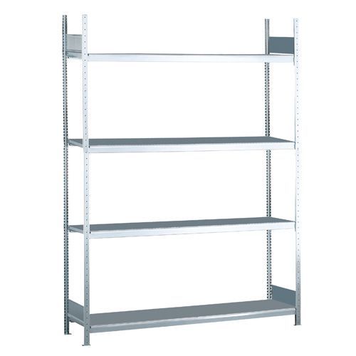 Bredfackshylla Easy-Fix: Grundsektion, Maximal vikt per hyllplan: 400 kg, Hyllplan, material: Stål Bredfackshylla Easy-Fix: Grundsektion, Maximal vikt per hyllplan: 400 kg, Hyllplan, material: Stål