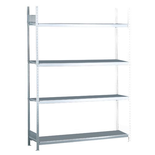 Bredfackshylla Easy-Fix: Påbyggnadssektion, Maximal vikt per hyllplan: 400 kg, Hyllplan, material: Stål
