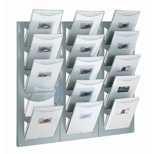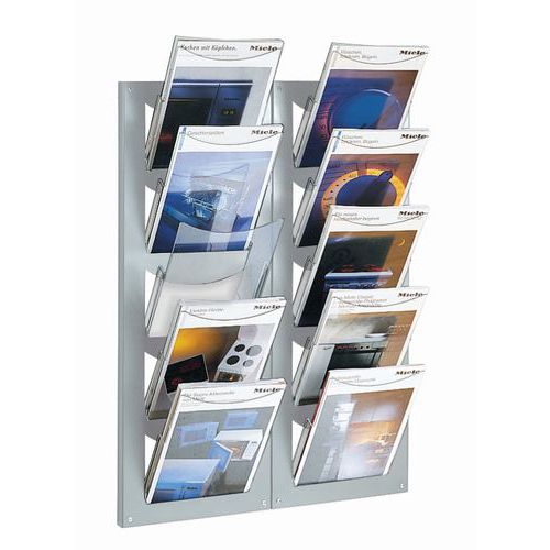 | Varunamn | Broschyrställ, 5 fack A4, Antal fack: 5, Färg: Grå, Total bredd: 30 cm, Total höjd: 90 cm, Totalt djup: 17 cm |
