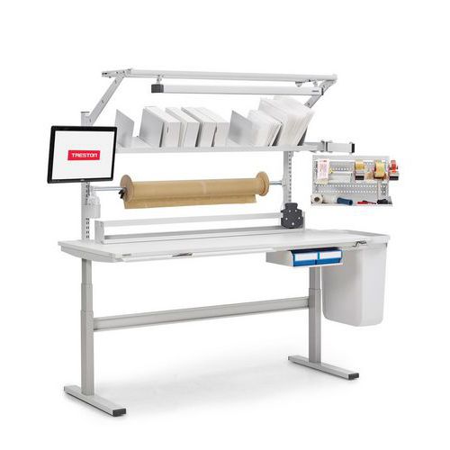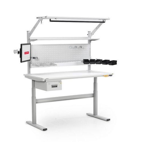 - Höjd och djupjusterbart C-profilstativ som monteras på pelarna och används för belysning och elverktyg.