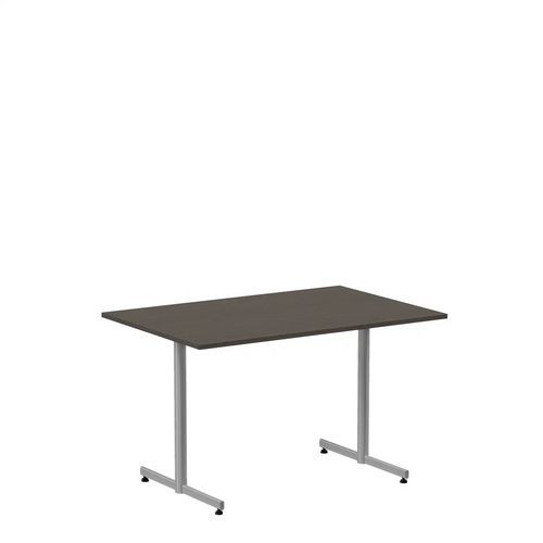 - Stabilt cafébord med fast T-stativ och ställfötter, fungerar väl för användning som lunchrumsbord eller avlastningsbord.