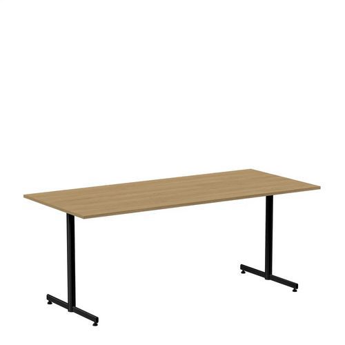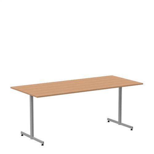 - Stabilt cafébord med fast T-stativ och ställfötter, fungerar väl för användning som lunchrumsbord eller avlastningsbord.