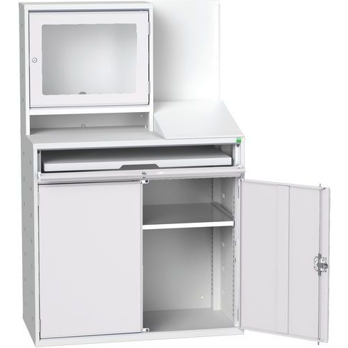 Med dokument-/skrivyta och magnetisk bakpanel för meddelanden.