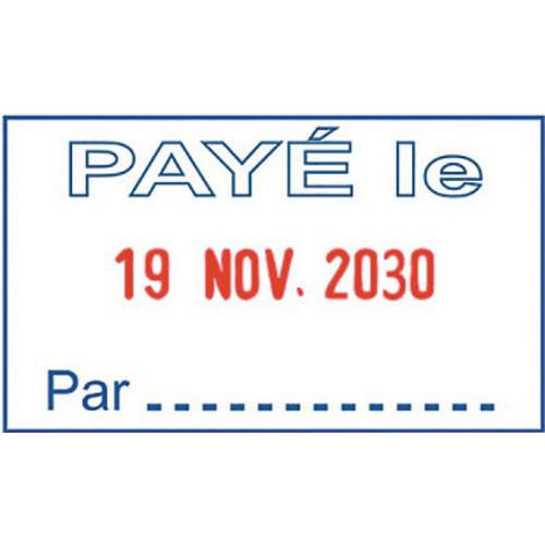| Varunamn | Datumstämpel standardformat, Antal rader: 3, Avtryck, bredd: 25 mm, Avtryck, längd: 41 mm, Bläck, färg: Svart |