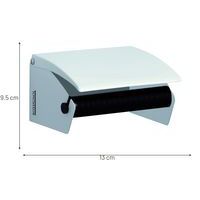 | Varunamn | Dispenser toalettpapper metall, Färg: Vit, Höjd: 8 cm, Bredd: 13 cm, Djup: 9.5 cm, Material: Metall |
