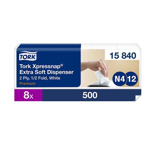 | Varunamn | Dispenserservett TORK N4 Extra 4000, Färg: Vit, Lager: 2, Format, längd: 330 mm, Format, bredd: 220 mm |