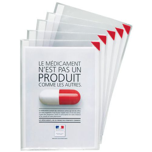 Perfekt för att visa dokument på glasväggar och vitriner (transparenta på båda sidor). Skyddar ytorna: inget behov av tejp, stift eller häftklamrar, och lämnar därför inga hål. Förbättrar bilden av ditt företag: effektiv presentation av dokumenten. Magnetisk stängning av hörn. 2 självhäftande remsor på baksidan. För användning i stående eller liggande läge. Har plats för 10 ark à 80 g.