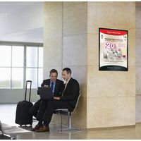Dubbelsidig affischering på glasskärm tack vare dubbelsidig ram.