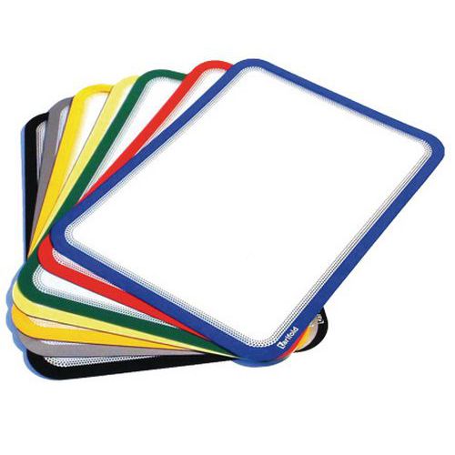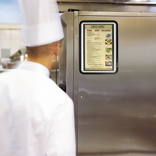 - Magnetisk baksida som fäster på alla metallytor. Snabb uppsättning av dokument. Matt yta för ökad läsbarhet. Rundade hörn ger en unik inramning. Kan användas i stående eller liggande format.