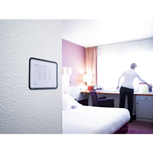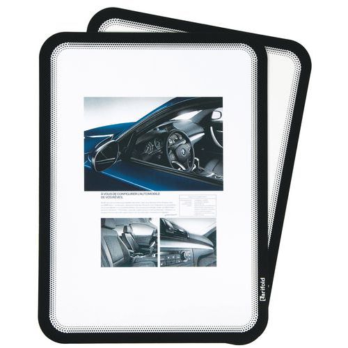 - Magnetisk baksida som fäster på alla metallytor. Snabb uppsättning av dokument. Matt yta för ökad läsbarhet. Rundade hörn ger en unik inramning. Kan användas i stående eller liggande format.