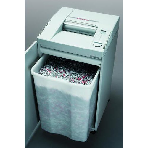 - IDEAL´s dokumentförstörare är försedda med elektroniskt kontrollerad transparent säkerhetslucka som stänger av maskinen i nedfällt läge och begränsar inmatning av pappersmängd till vad maskinen klarar. Maskinerna är också utrustade med EASY SWITCH, multifunktionsströmbrytare, som styr maskinen och indikerar start, stopp och backfunktion genom att lysa i olika färger. Automatisk backfunktion och avstängning vid pappersstopp eller om avfallssäcken behöver bytas.
