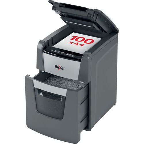| Varunamn | Dokumentförstörare Optimum AutoFeed+ 100X P4, Plåtkapacitet 80 gr.: 100, Volym: 34 L |