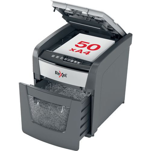 | Varunamn | Dokumentförstörare Optimum AutoFeed+ 50X P4, Plåtkapacitet 80 gr.: 50, Volym: 20 L |