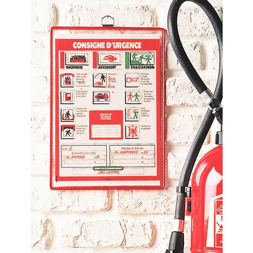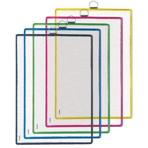 Praktisk hängficka - en perfekt och lättillgänglig lösning för information som behövs dagligen. Färgglad och antireflexbehandlad ram, transparent ficka. Fästögla i metall för väggfästning.