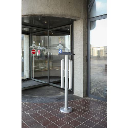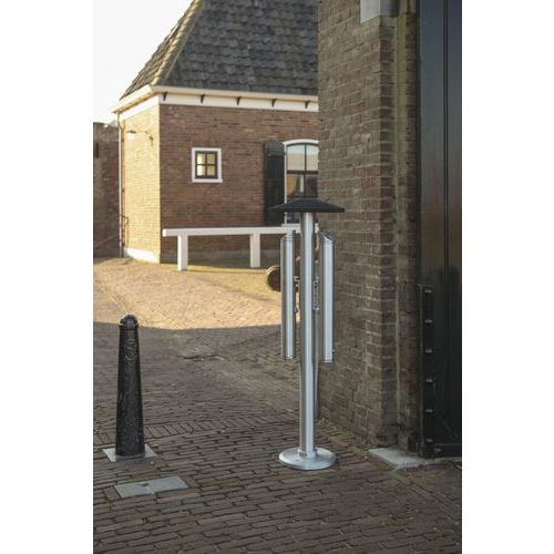 Dubbel askkopp fristående i aluminium 5,4 liter, Askfat, volym: 5.4 L, Färg: Grå, Höjd: 138 cm, Bredd: 37 cm