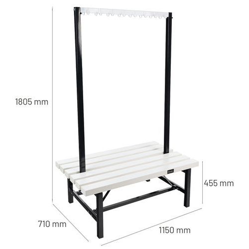 | Varunamn | Dubbelsidig vit PVC-bänk med krokar, Sits, material: PVC, Antal krokar: 16, Typ av tillbehör för skåp: Bänk |