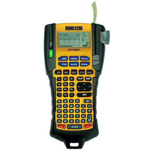 | Varunamn | Dymo RhinoPRO 5200 Industri, Drivs med: Batteri, Type de ruban: D1, Bredd: 88 mm, Höjd: 285 mm, Djup: 155 mm |