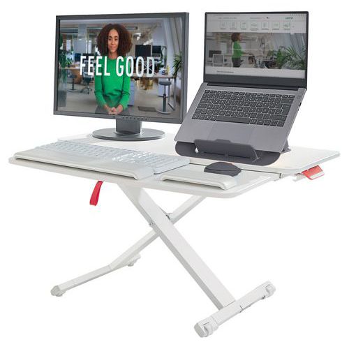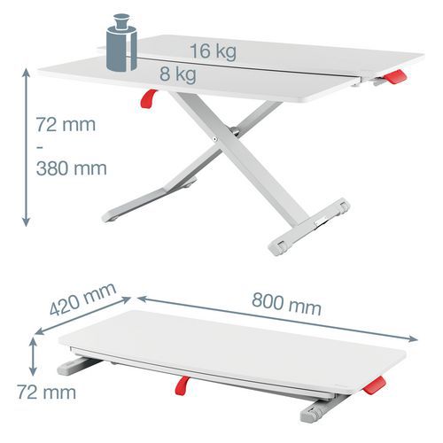 Ergo höj- & sänkbart skrivbordsställ med tangentbordsskiva, Maximal last: 24 kg, Maximal höjd: 380 mm