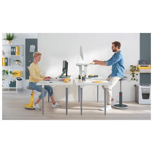 Den pneumatiska höjdjusteringen gör det enkelt att växla mellan sittande och stående arbete för att främja muskelrörelser för allmän hälsa och välbefinnande.