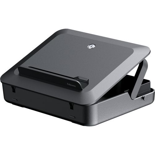 Stativet har 5 höjdjusteringar för att främja en bra ergonomisk position när du tittar på din bärbara dators skärm.