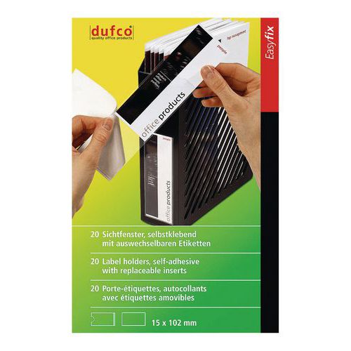 Självhäftande etiketthållare med utbytbar remsa