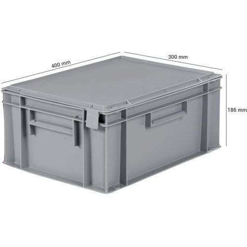 Eurobehållare med lock 10 l till 30 l 400 mm, Volym: 15 L, Stapelbar: ja, Total höjd: 186 mm