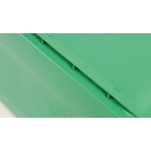 Eurowave-serien är lämplig för alla dagliga uppgifter. Ergonomisk och lätthanterlig behållare. Robust konstruerad behållare, vilket säkerställer stor stabilitet vid daglig användning. Integrerade infällda handtag för bekväm användning. Stapelbar behållare med eller utan lock enligt europeisk standard. Miljövänligt sortiment: endast återvunna material. Lättare behållare tack vare minskad användning av plast i produktionen.