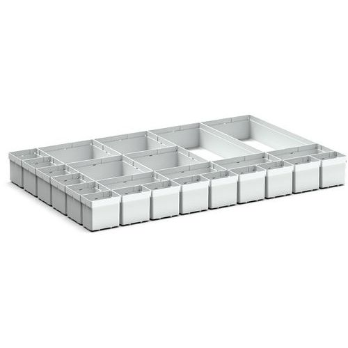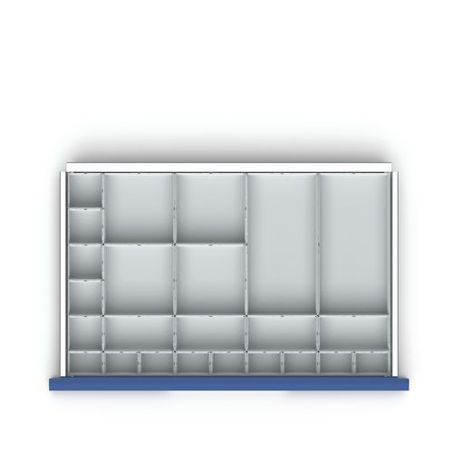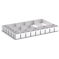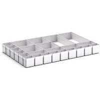 | Varunamn | Fackindelning för lådor H 100x800 – Bott, Höjd: 100 mm, Bredd: 800 mm, Djup: 550 mm, Antal fack: 16 |
