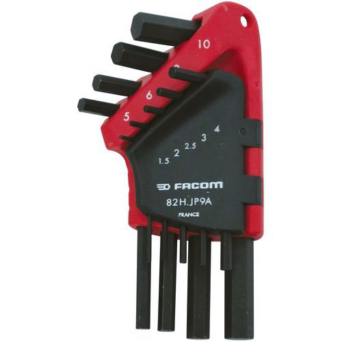 | Varunamn | Facom sats med korta insexnycklar – metriska, Kapacitet (dimension): 1,5, 2, 2,5, 3, 4, 5, 6, 8, 10 mm |