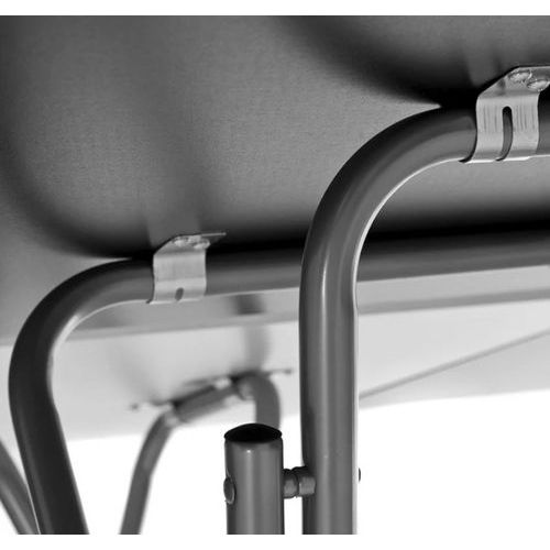 - De silverlackerade, fällbara bordsbenen är av metall.