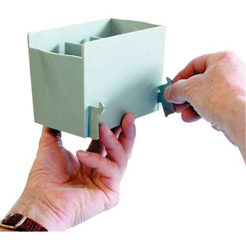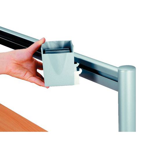 - Tillbehör till Skena skrivbord Manade. För att fästa tillbehör på förvaringsställning. Fästbrickorna fästs på tillbehören.