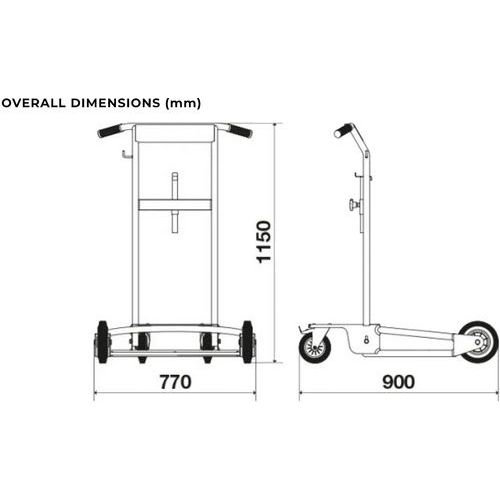 | Varunamn | Fatkärra för helfat, Kapacitet: 250 kg, Total bredd: 1150 mm, Totalt djup: 900 mm, Total höjd: 770 mm |