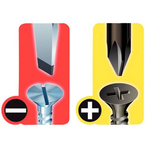 - Färgkoder och symboler för omedelbar identifiering av rätt skruvmejsel.