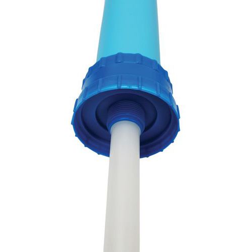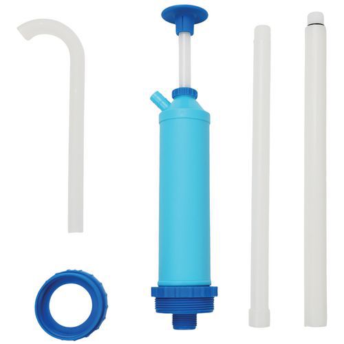- Manuell fatpump i plast för enkel tappning från fat och behållare.