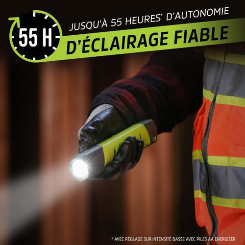 Timmars batteritid: Denna pålitliga och hållbara Energizer-fackla kan lysa i upp till 55 timmar i lågt läge* *Med 2 AA-batterier.