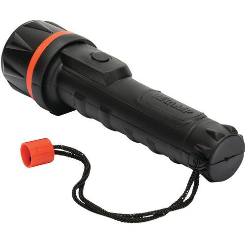 Fungerar med två alkaliska AA/LR6-batterier eller D/LR20-batterier beroende på beställd modell (ingår ej).