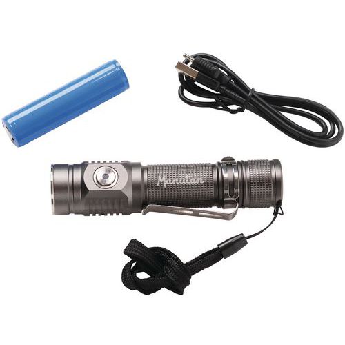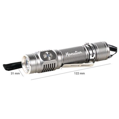 | Varunamn | Ficklampa med fokus uppladdningsbar, Ljusflöde: 1000 lm, Livslängd: 3.5 timme |