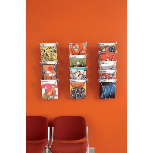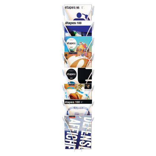 Displayställ i olika storlekar för A4-dokument. Stora slitsar. Monteras enkelt på under 5 minuter