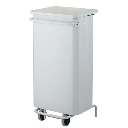 | Varunamn | Flyttbar papperskorg med pedal för livsmedelsindustrin, Volym: 110 L, Öppning: Med pedal, Material: Metall |