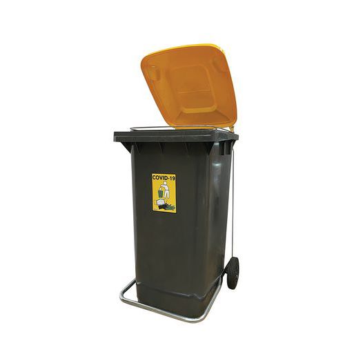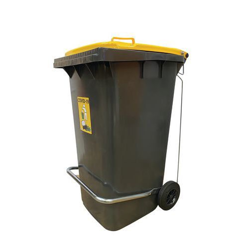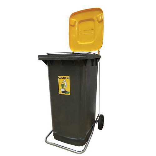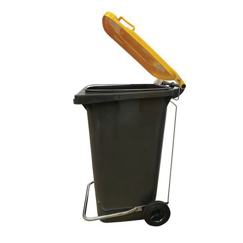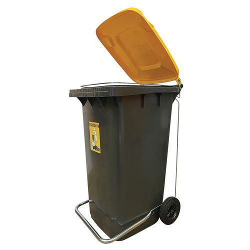 Flyttbar och hygienisk sanitetsbehållare med pedal. Lättskött behållare tack vare den jämna plastytan. Sorteringskärl för avfall med gult lock och särskild etikett. Mycket stabil behållare som enkelt flyttas med två solida hjul. Alla Manutan-produkter har testats och godkänts av våra team.