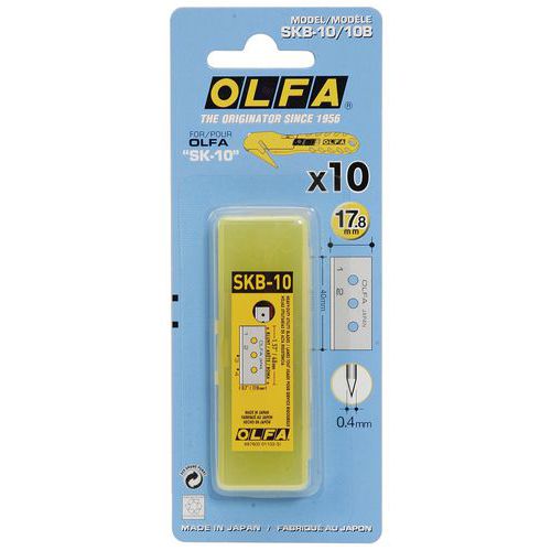 | Varunamn | Förpackning med 10 blad för SKB-10-skärare – Olfa, Material: Stål, Blad, bredd: 17.8 mm, Blad, längd: 40 mm |