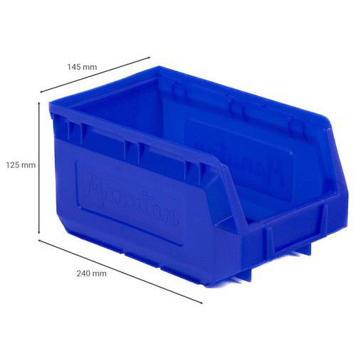 Rymlig och stabil back tillverkad i slagtålig polyeten. Flatbottnad invändigt och runda innerhörn i framkant gör det lättare att få upp saker. Okrossbar. Stapelbar. Tål kemikalier, oljor och syror. Idealiskt för reservdelar, skruvar och muttrar men även pyssel, leksaker och diverse. Anpassade till paneler och skenor. Den blå backen är livsmedelsgodkänd.