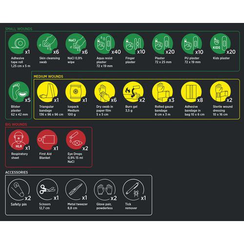 | Varunamn | Första Hjälpen-väska, Premium, Färg: Svart, Bredd: 335 mm, Längder: 230 mm, Djup: 85 mm |