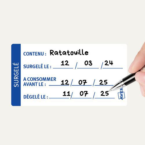 | Varunamn | Förtryckta spårbarhetsetiketter frys för livsmedel, 200 st – Avery, Antal etiketter/ark: 200 |