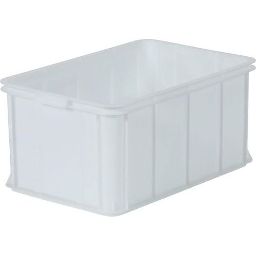 Livsmedelsgodkänd förvaringsback New York, tillverkad i slagtålig HD-polyeten – perfekt för transport, lager och förvaring. Tålig mot de flesta syror, oljor och alkaliska lösningsmedel. Backen har rejäla handtag på kortsidorna och en plan botten som lämpar sig för rullbanehantering. Mycket stabil vid stapling. Modulanpassad för standardiserad Europapall (EUR/EPAL).