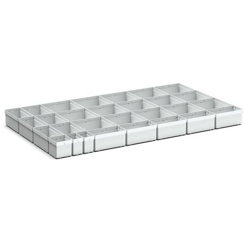 | Varunamn | Förvaringsbackar för låda Cubio EKK06100, 29 fack – Bott, Bredd: 1050 mm, Djup: 650 mm, Höjd: 100 mm |