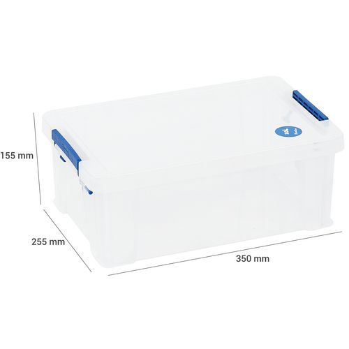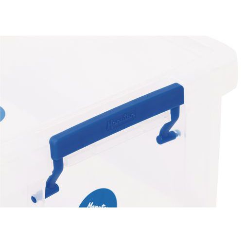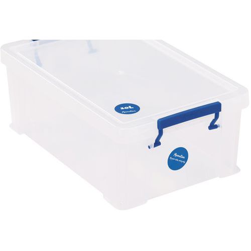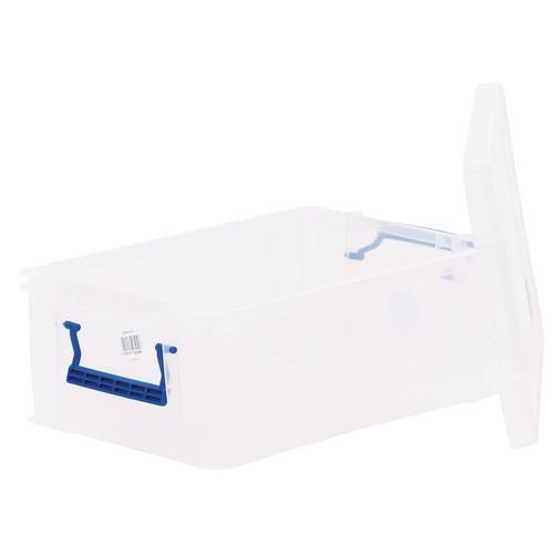 Förvaringsbehållare och lock - robust och tålig behållare för all slags förvaring. Handtagen gör den enkel och praktisk att transportera. Behållaren är genomskinlig vilket gör det snabbare att se och hitta objekten inuti.