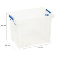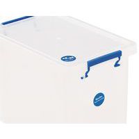 Förvaringsbehållare och lock - robust och tålig behållare för all slags förvaring. Handtagen gör den enkel och praktisk att transportera. Behållaren är genomskinlig vilket gör det snabbare att se och hitta objekten inuti. Tillverkad i Storbritannien Maximal last (kg) : 200 kg NSF-certifierad